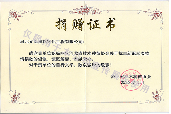 我公司為河北省林木種苗協會副會長單位、保定市林木種苗協會常務副會長單位、保定風景園林行業協會副會長單位、安國市林木種苗協會會長單位。