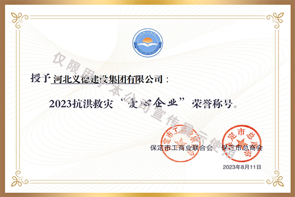 • 2023抗洪救災“愛心企業”榮譽稱