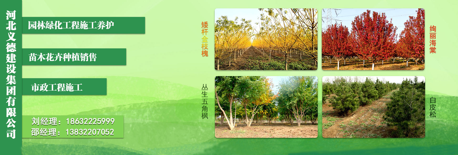 歷經多年發展積淀,公司已建成4000余畝標準化苗木培育基地,規?;N植培育60余種優質園林綠化苗木,可對外供應喬灌木10萬余株。產品銷售區域以京津冀為核心,在北方園林綠化行業具有較高的市場認可度。秉持“信譽第一、質量第一、服務第一”的宗旨,公司深耕行業多年,以開拓進取、精益求精的專業精神穩健前行,2017-2022年累計榮獲河北省城市園林綠化優質工程二等獎五項、三等獎兩項,用扎實業績彰顯專業硬實力。